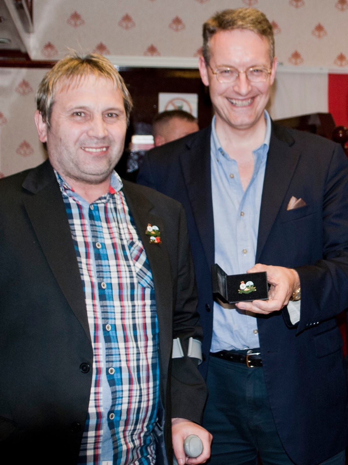 | Jez Turner (right) receives an award for services to his country at the John Tyndall Memoial Meeting 2015. |